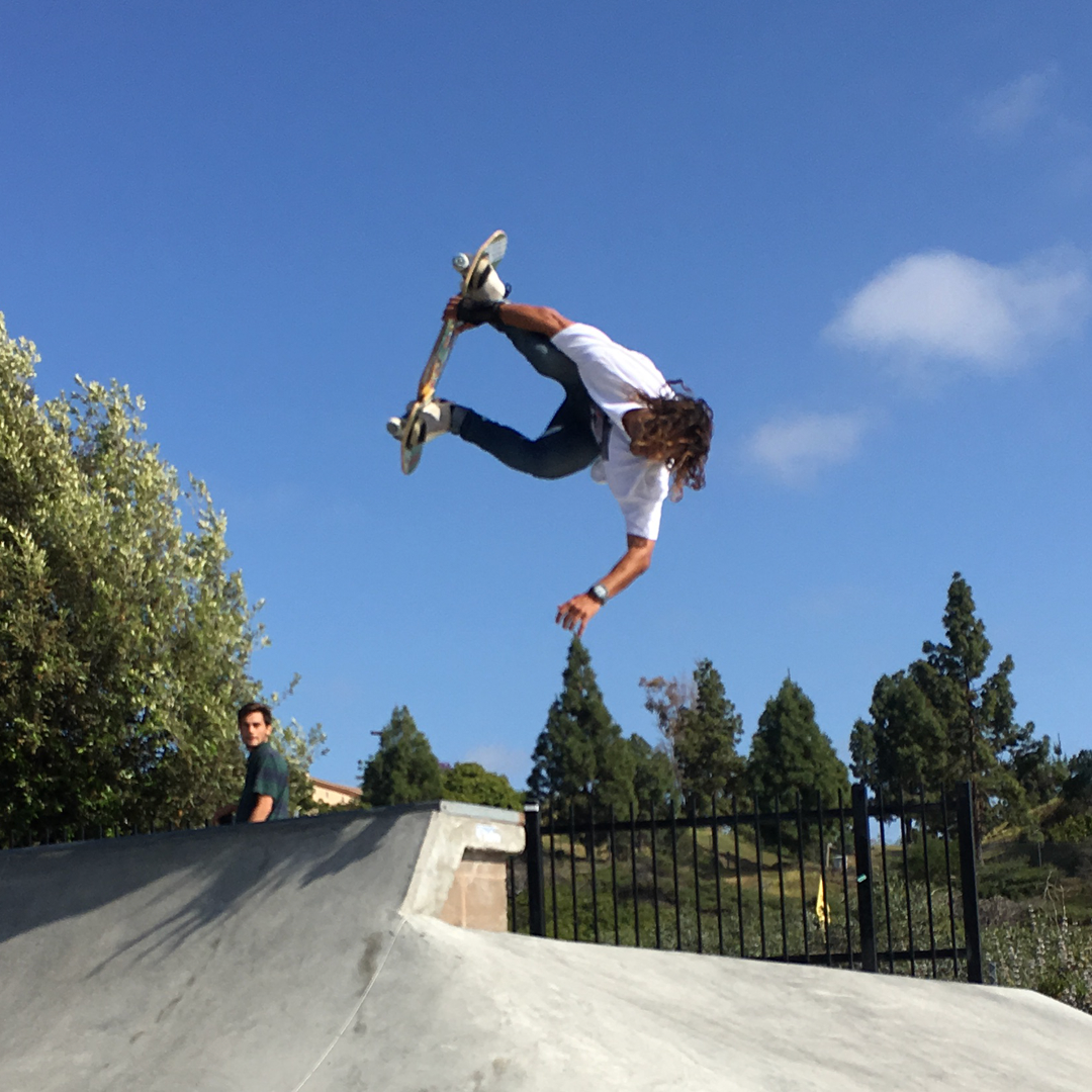 The first board was, to put it mildly, rudimentary. Two pieces of board, some hacked up rollerskates and some plumbing pipe.